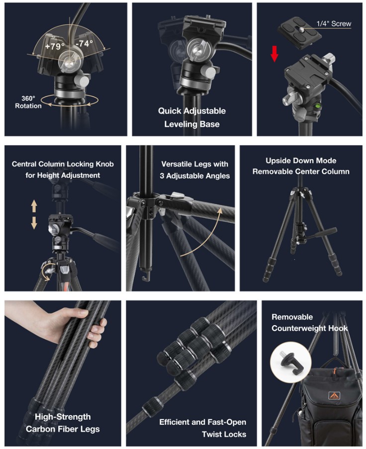 E-Image TC204 Trípode compacto profesional con cabezal fluido cap. 5kg