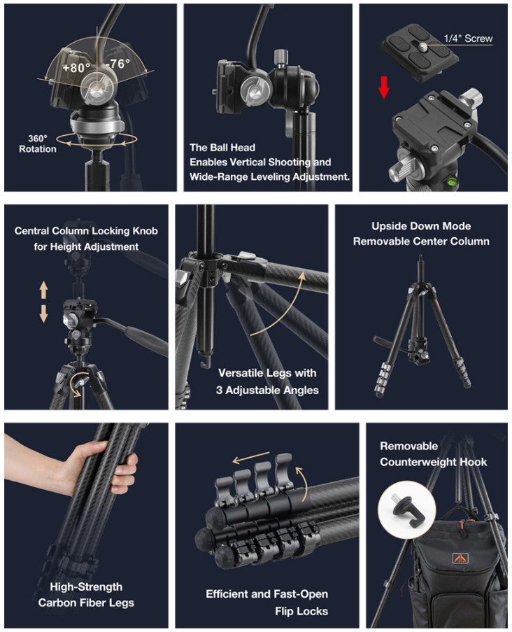 E-Image TC205B Trípode compacto profesional con cabezal fluido cap. 5kg